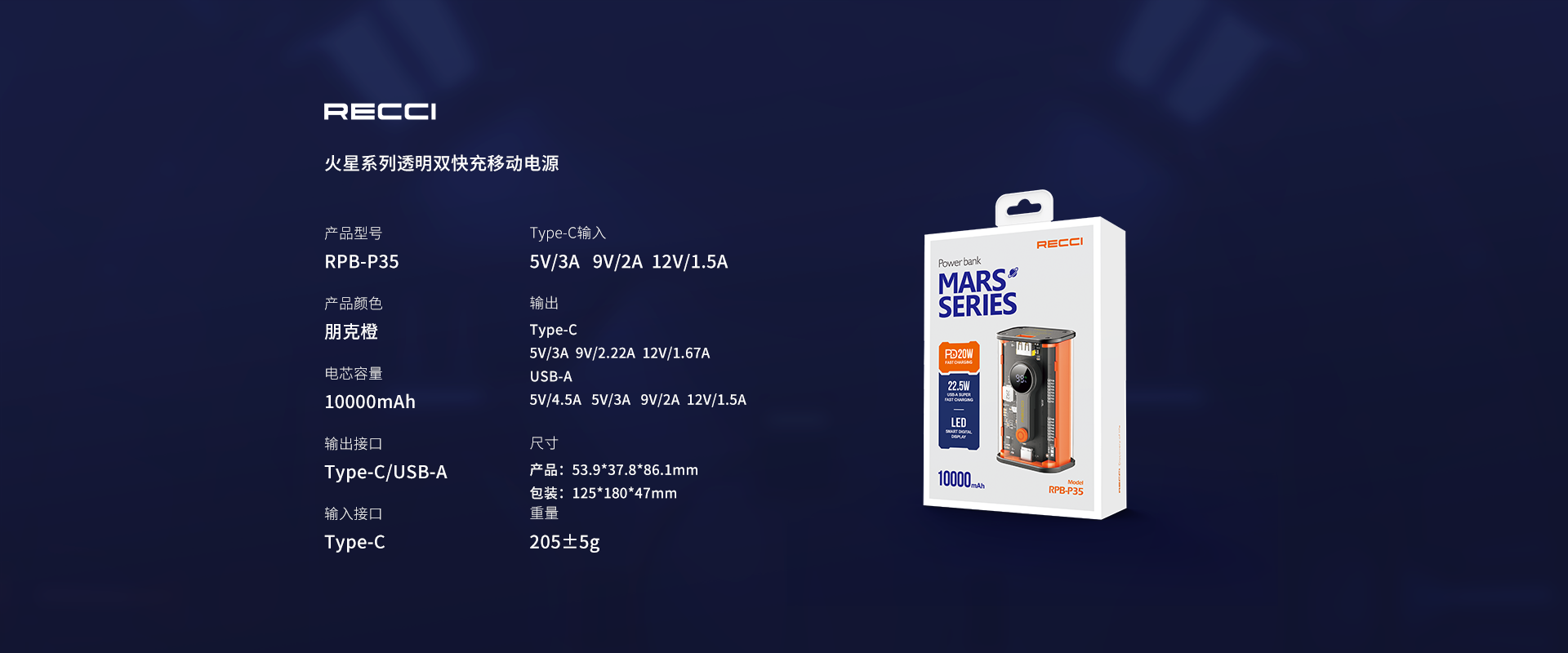 火星系列 透明双快充移动电源