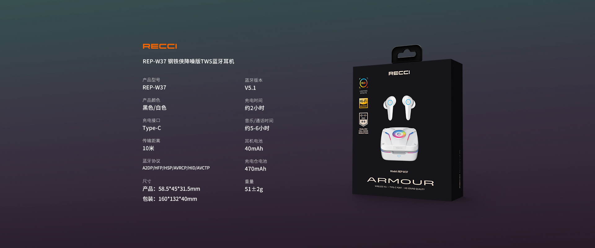 • 钢铁侠降噪版蓝牙耳机