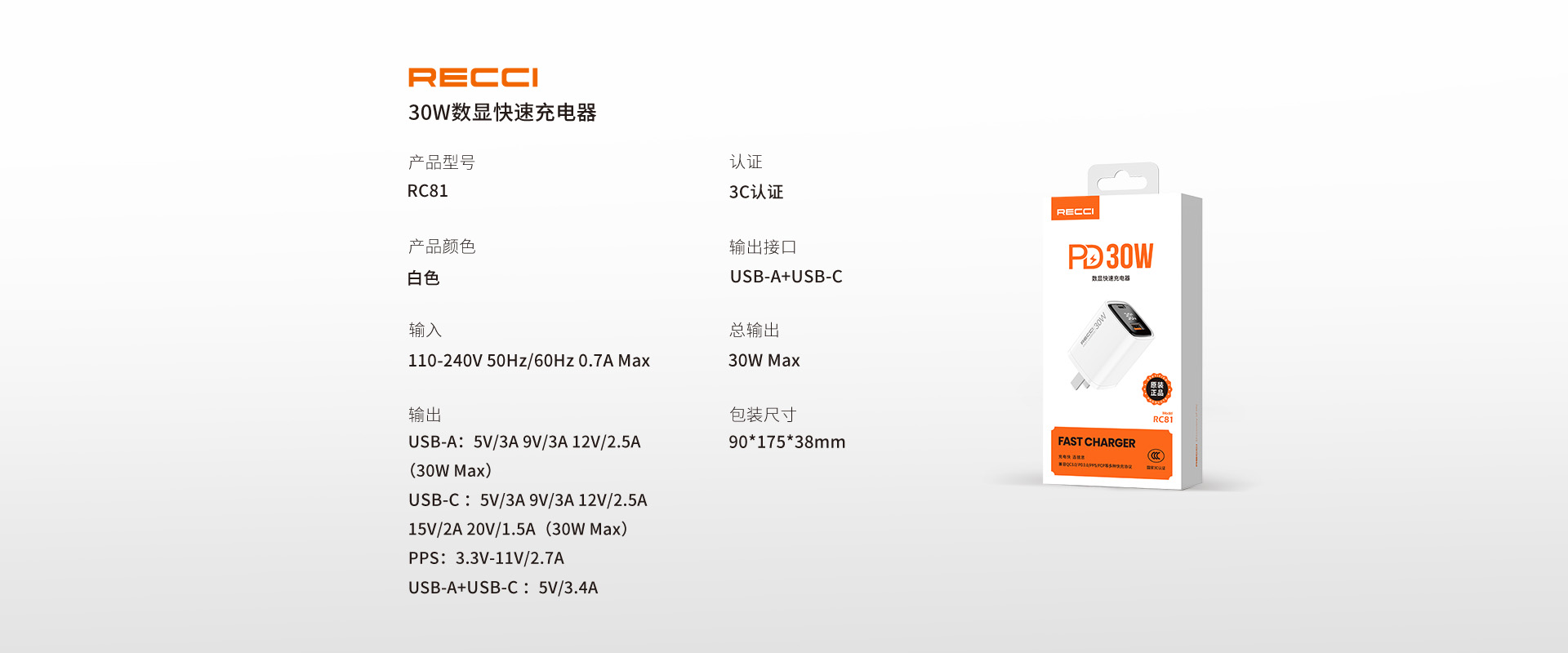 30W数显快速充电器