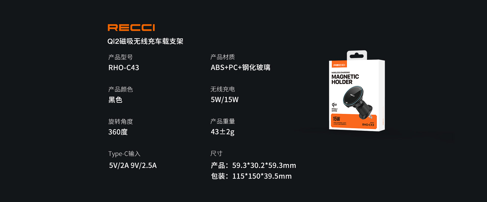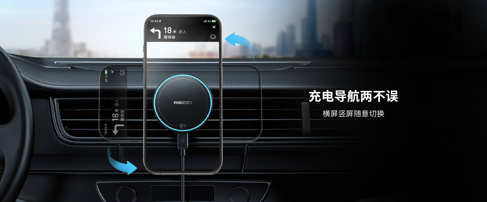 • Qi2磁吸无线充车载支架